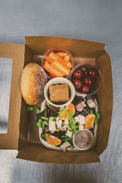 Farrell created a straightforward yet creative menu with flexibility for customers. The user-friendly website allows customers to easily select their children’s lunches for the week. For each main lunch item, parents can choose the fruit, vegetable and treat with an additional option for a snack or drink. Prices for each lunch start at $6.00 for children ages 3–7, $7.00 for ages 8–10, and $7.50 for ages 11 and up. For $1.50 more, you can add a drink or snack pack to complete the meal.