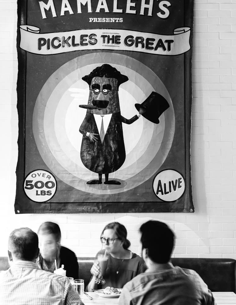 Co-owner and Bar Manager Evan Harrison says, “To begin with, we were just going to do egg creams. And maybe our own take on Dr. Brown’s Cel-Ray Tonic.” Harrison explains that deli food needs flavor contrasts. A rich, fatty pastrami or corned beef sandwich needs to be paired with a sharp fermented flavor. “A little bit of ginger, or mustard, the sharp tang of a pickle,” he says. “That’s why a Reuben sandwich works so well.” And doesn’t a plate of whitefish or Nova cry out for a glass of Cucumber Soda or a sip of Pomegranate Ginger?