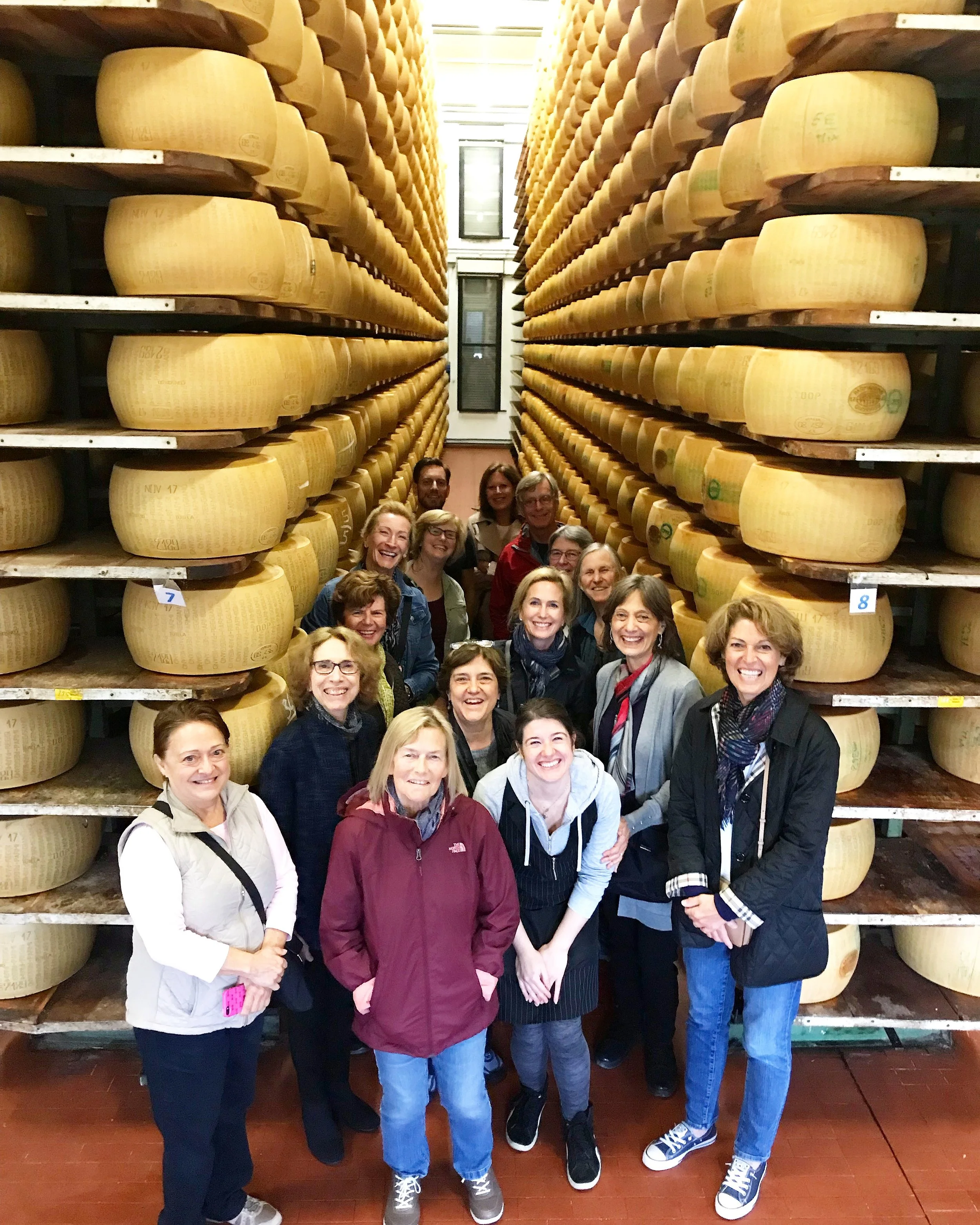 A short drive to central Bologna and we were in the heart of the red city, the perfect place for our only day of rain on the entire tour. It’s as if Bologna were built for rainy days—the entire city is connected via arcaded sidewalks, so you’re almost always covered. We met our walking guide in the central piazza and promptly made our way to the University, the world’s longest operating institution of higher learning, founded in 1088. We sat on wooden benches in the anatomical theatre, perused the ancient law library and admired the family coats of arms decorating the courtyard of the Archiginnasio, the university’s oldest building. Then it was off to the market district a short stroll away, where we poked our heads into produce shops, butchers, cheesemongers and fishmongers, along with bakeries, tavole calde (“hot tables," or cafeterias) and fresh pasta shops. We split for lunch (and nearly all of us found a steaming plate of lasagne Bolognese) then enjoyed free time at the hotel before going back down the hill to our cooking class at the Podere San Giuliano. This beautiful farm property, owned by the lovely Federica Frattini, is where she taught us to make fresh egg pasta dough, to roll it by hand with a pin and cut it into tagliatelle—we also learned to stuff and pinch pumpkin tortellini and Federica demonstrated her family’s ragù Bolognese recipe in her kitchen before serving it all to us for supper. Another incredibly educational day brought to us by passionate people who generously shared their techniques and the traditions they represent in their region.