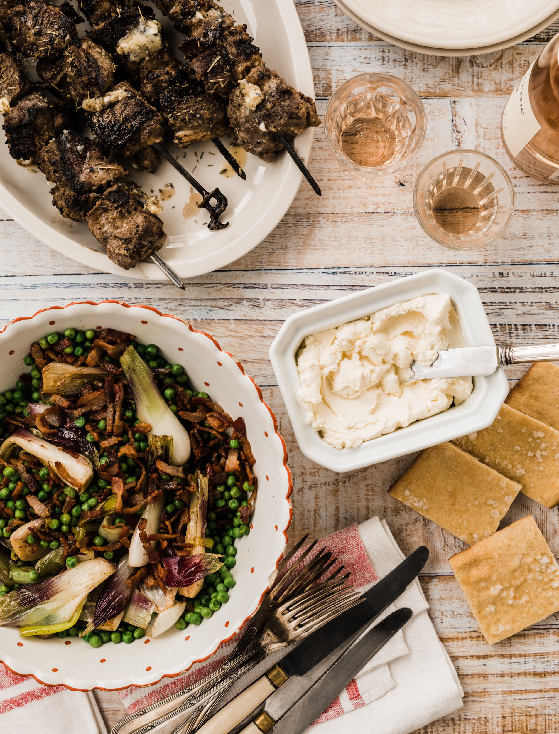 With each of these home-cooked dishes I hope I can share my love for all things France, especially the art of French country hospitality. Yes, we will travel to France again, but for now I am pretty darn lucky and happy to be here in New England with beautiful spring ingredients, a grill stacked with fresh lamb skewers in the backyard with good friends.