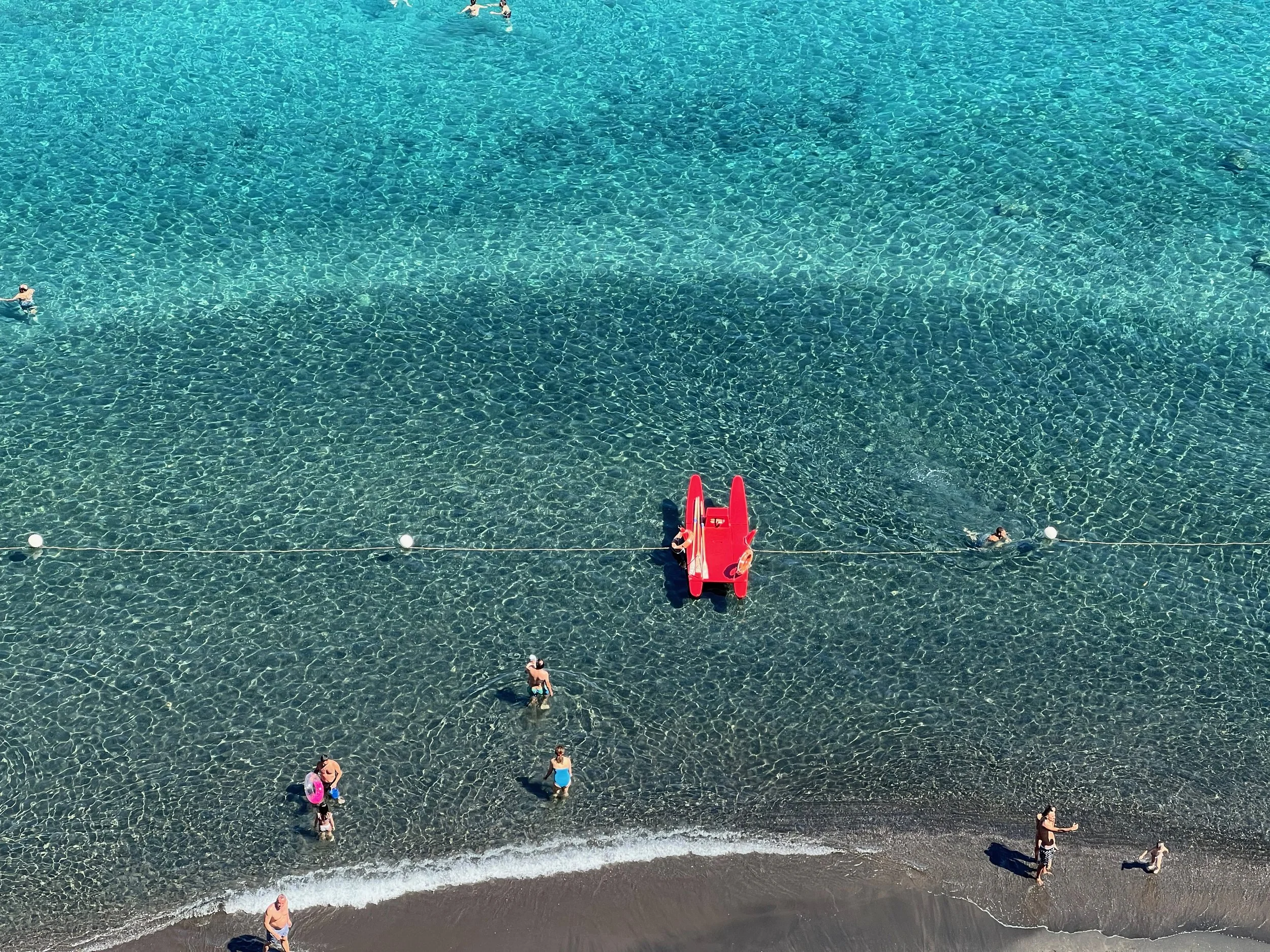 After lunch, we checked into our American-style city hotel, kept icy cold during the heatwave, thank goodness, then we set out for a walking food tour of the city. The mood was high—the pizza and wine were just that good—and the heat was intense! We persevered, ate more pizza: This time, street pizza, folded in half and dripping with cheese, scarfed down in a narrow medieval pedestrian passage. We drank more wine (a local sparkling white and deep, rich claret Aglianico) and learned about the resilience of this city and her people, whose socioeconomic status (and reputation) within the region has swung wildly from century to century. One can clearly see the efforts the municipality is making to improve conditions, but Naples will always be Naples: a little bit rough, a little bit dirty, always full of vigor and character and just the right kind of chaos. And such excellent food! We ended the evening with a seafood supper in a neighborhood osteria followed by a nightcap on our hotel’s rooftop overlooking Mount Vesuvius shrouded in mist. One last spritz to mark the end of an extraordinary week.