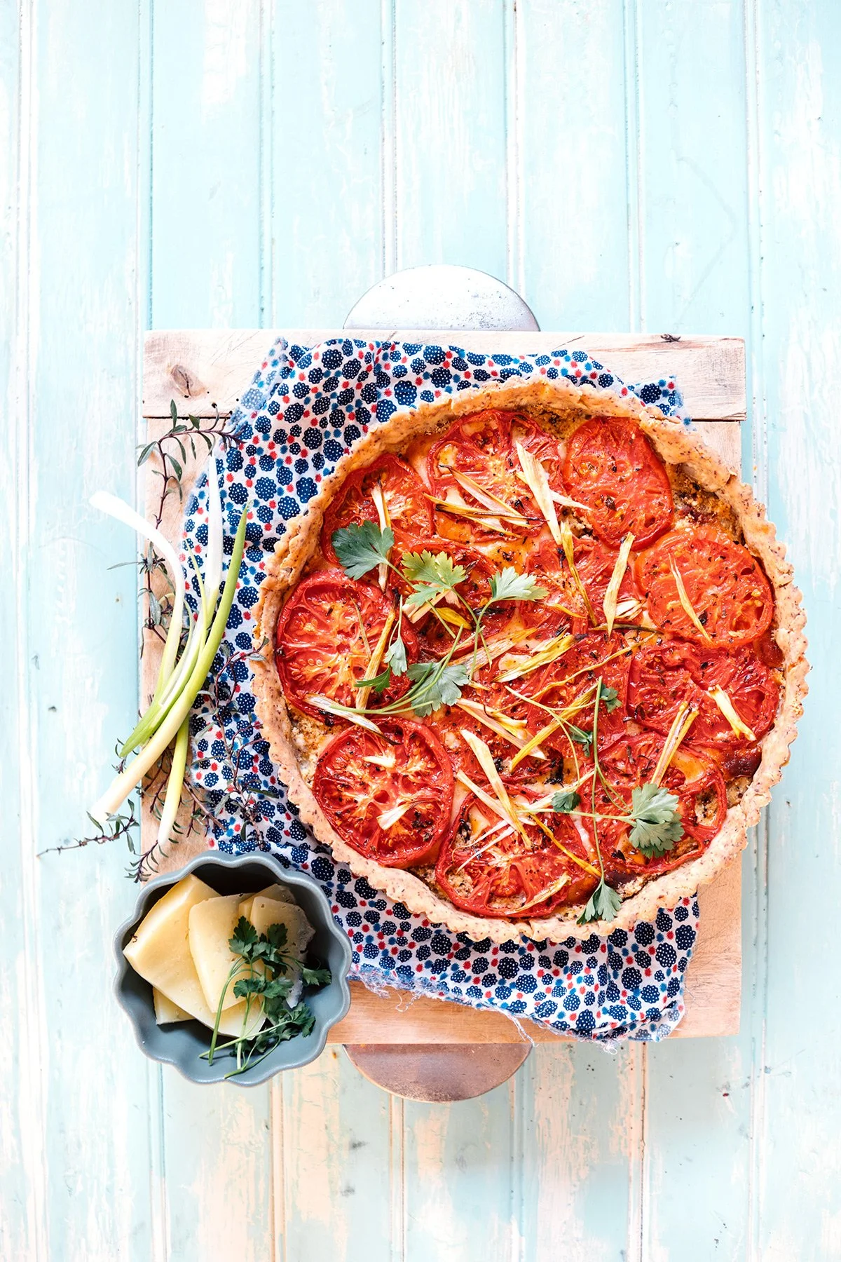 Tomato Tart with Mustard, Hazelnuts and Manchego