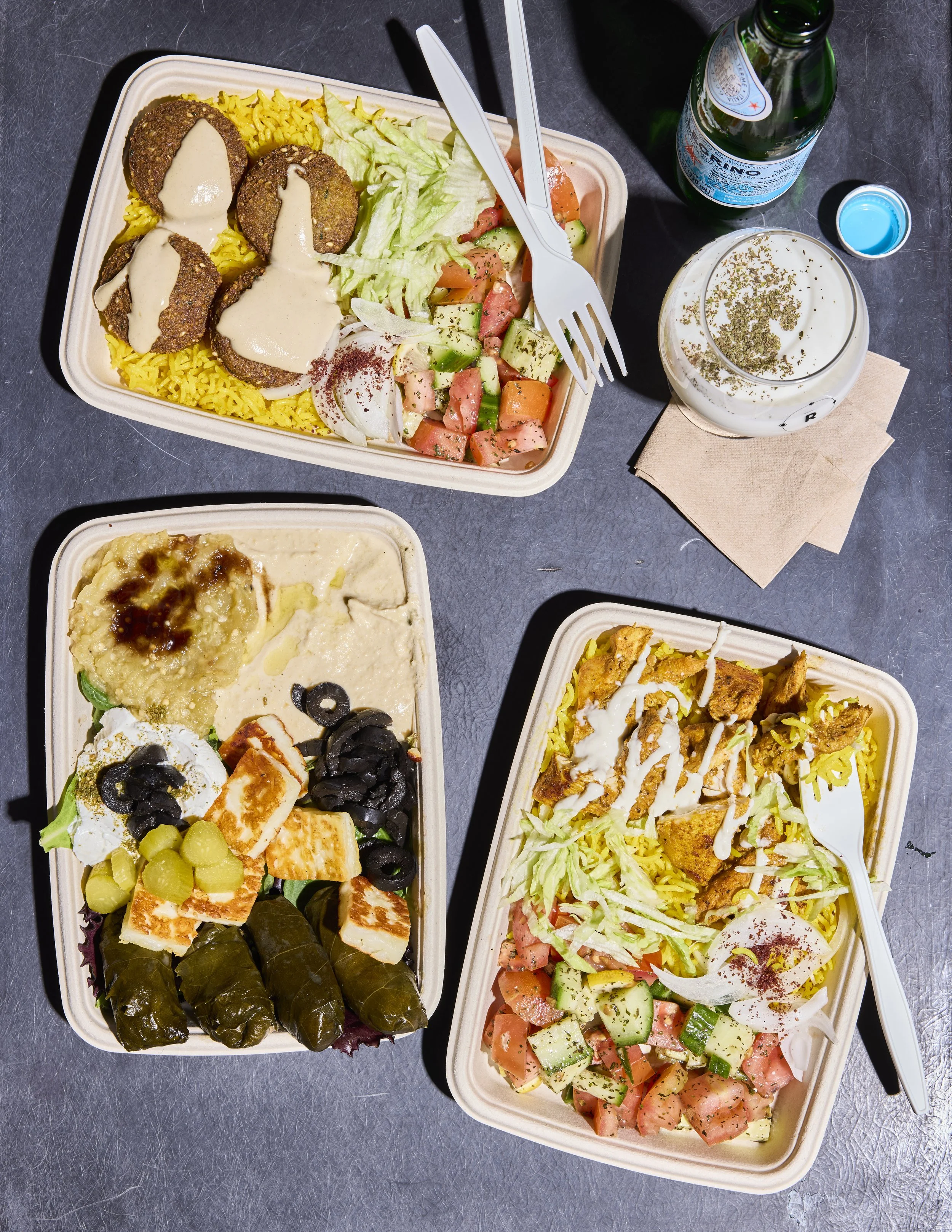 Petra Mediterranean Cuisine at Bow Market serves a succinct menu of traditional Jordanian dishes from founder Abdullah Srour, such as combo plates of basmati rice, creamy hummus, fresh vegetables and herbs, and tangy garlic sauce with a choice of falafel or grilled chicken. The latter is uniquely spiced by a 14-ingredient blend including cumin, turmeric and cardamom.