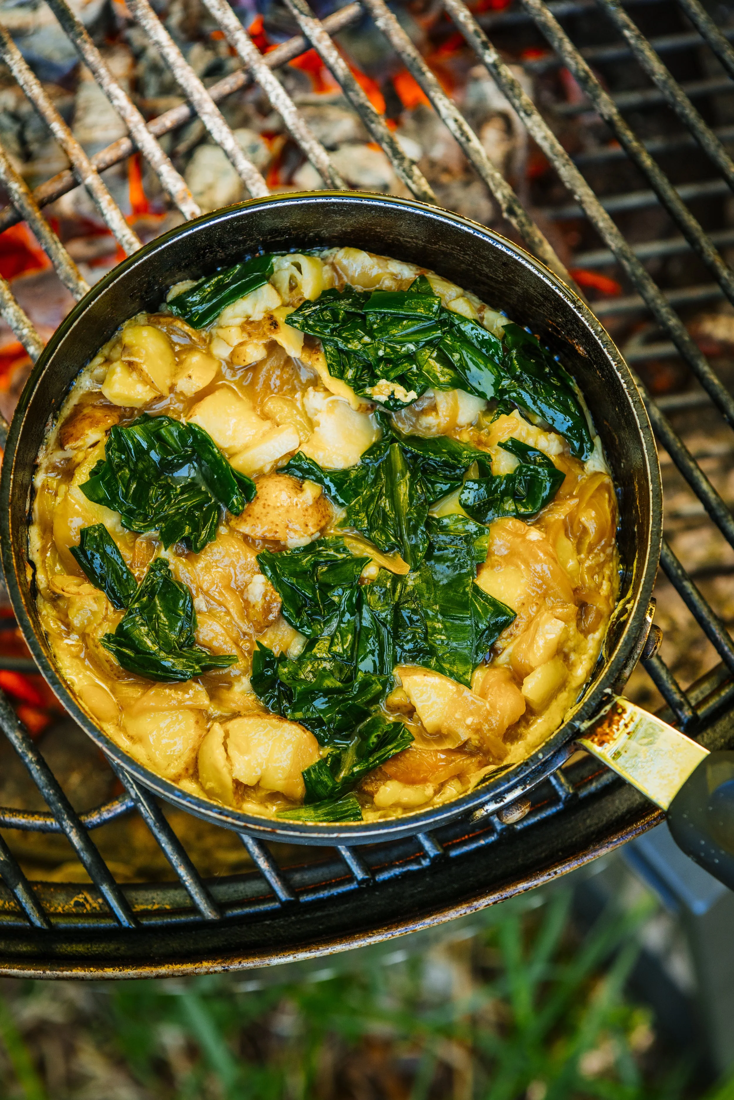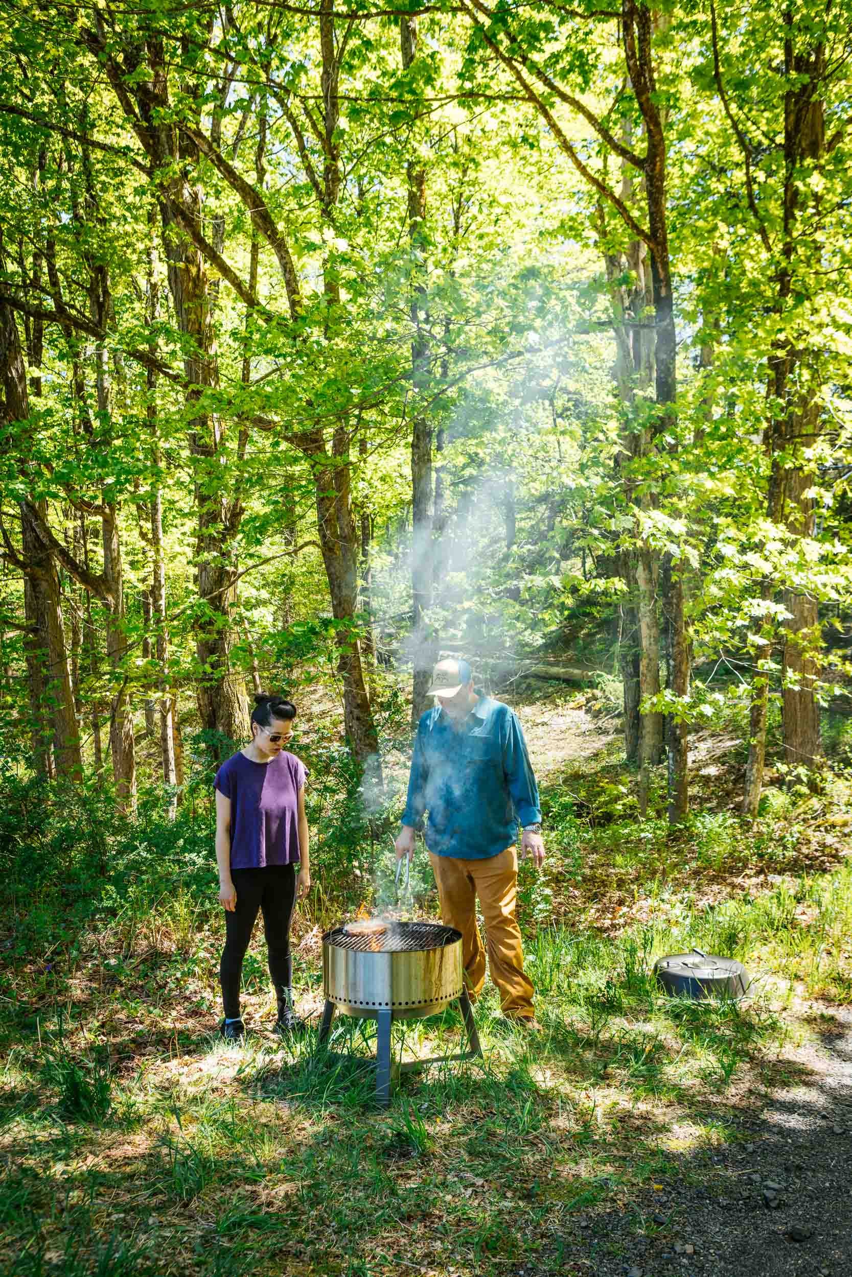 With baskets only as full as they needed to be, these foragers return to their cars and prepare a feast. While it’s unusual to eat their harvest in the field, the bounty and beauty of this day warrant full appreciation. Forman lights up the charcoal to grill ramp leaves with Wagyu beef and sausage, while Chang prepares her Spanish tortilla. Auger uncorks a bottle of the organic biodynamic wine she curates for her Ju’s Bottle Shop in Worcester.