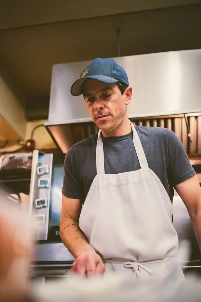 A lifelong baker and farmer, Roberts grew up in New Jersey and just outside Philadelphia, part of a large Italian family who would ultimately lend their surname to his pop-up (Rabottini being the original Italian iteration of the now-Anglicized Roberts). Roberts started his career in pizza early, working at a Domino’s chain outpost. He quickly moved on to bigger and better endeavors, though, following his passion and cultivating his talent for pizza making. He would spend time living in Portland, Oregon, working at the now critically acclaimed Apizza Scholls—a West Coast pizza mecca—until he found his way back east and ended up in Massachusetts. Together with his wife, Erinn, he was helping to manage Waltham Fields Community Farm, a 14-acre, 500-member CSA vegetable farm in Waltham. Erinn still manages the farm, and their produce has been known to show up on his pizzas.